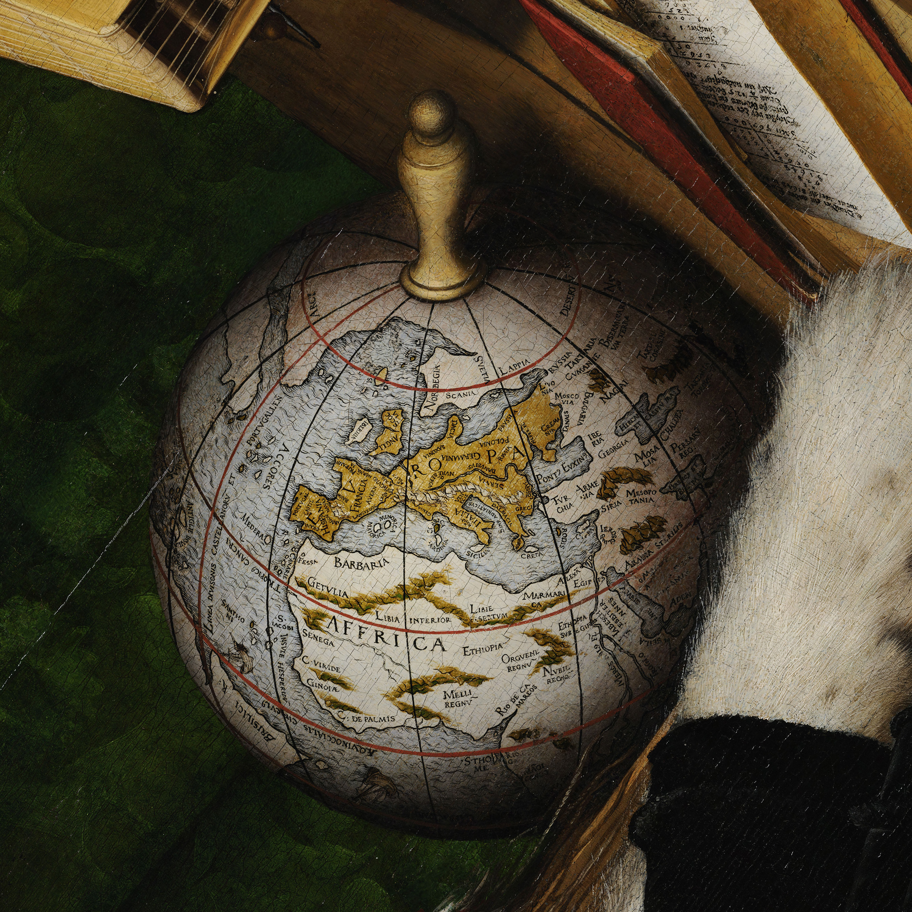 17. Holbein. The Ambassadors. Mapa com rota da circum-navegação
