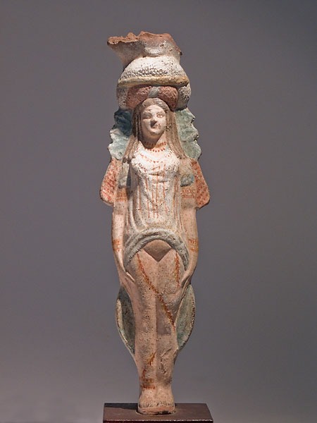 08. Isis-Afrodite ou estatueta funerária de uma cortesã sagrada. Terracota pintada. Funerary statuette of a sacred courtesan Painted terracotta Height 22.3 cm Período ptolomaico. 330-30 a.c. – Cópia