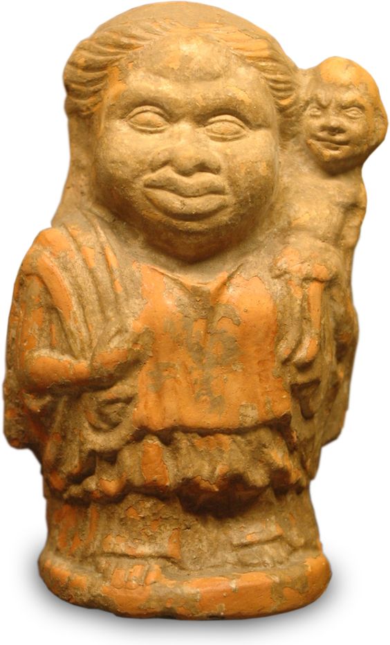 09. Mulher grotesca com uma menina ao ombro. Ática. Grécoa, 325-300 a.C. Museu do Louvre.