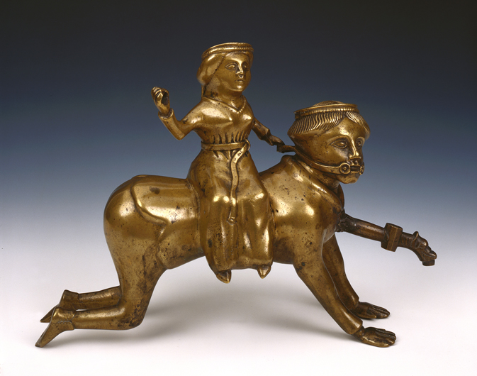 10. Aquamanile représentant Aristote et Phyllis. XVe siècle. Musées royaux d’Art et d’Histoire. Bruxelles.