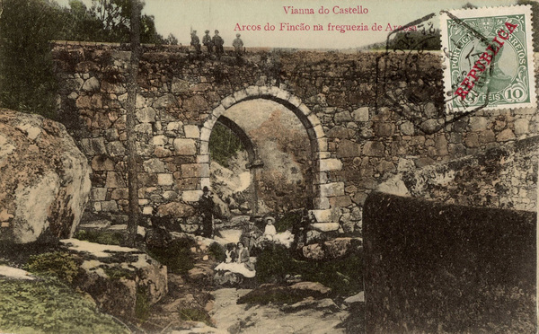 Postal 11 Frente. Arcos do Fincão na freguesia de Areosa. Bazar Couto Viana. 1911